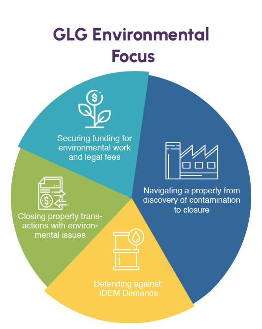 Our work includes evaluating regulatory reporting duties, hiring and working with an environmental consultant, interacting with IDEM, overseeing the work plans and results, and assessing closure options to best match the client’s goals.
